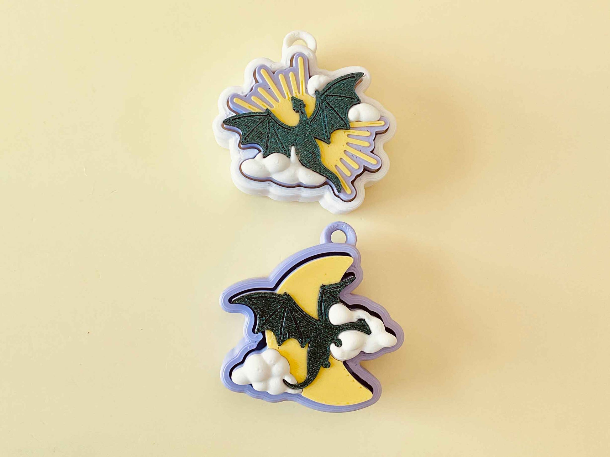 Soar between day and night with our Sun & Moon Flying Dragon Set, a stunning celestial-themed duo perfect for fantasy lovers, dragon collectors, and anyone who enjoys magical, atmospheric designs. Each piece features a beautifully detailed flying dragon paired with either a radiant sun or a serene moon backdrop—creating two captivating scenes full of movement and myth.